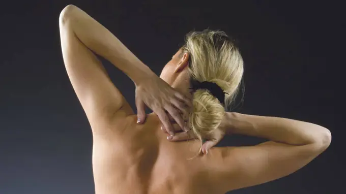 Поднимите плечи к ушам, словно хотите спрятаться в воротник. Задержитесь на 2 секунды, а затем опустите их вниз и полностью расслабьтесь.